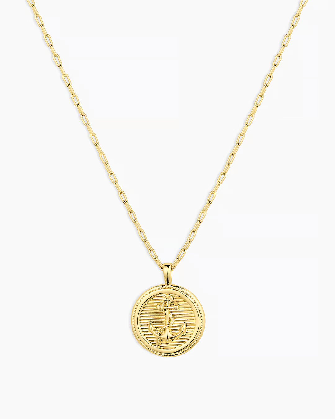 Set sail on your next adventure with the Anchor Coin Necklace. Featuring a nautical anchor coin pendant and adjustable chain, this piece adds a touch of the sea to any outfit. Perfect for layering or wearing on its own.