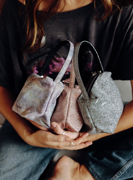 Introducing the Astuccio Little from L'aura Handbags, a stunning bag that brings a touch of glamour to your accessory collection. Featuring a captivating glitter tie-dye design in black, gold, and silver, this bag is perfect for making a bold statement wherever you go. The versatile design allows you to wear it as a handbag or shoulder bag, providing both style and functionality. Its eye-catching color combination and shimmering finish make it an ideal accessory for both casual outings and special occasions. Elevate your look with the Astuccio Little - where chic meets playful elegance in a beautifully crafted handbag!