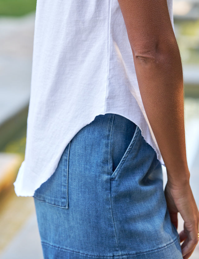 Charlotte is a modern take on a collegiate classic, designed for a loose fit with a fresh, contemporary vibe. Featuring modern details like a signature raw hem, a longer back for added coverage, and a chest pocket, this piece is as stylish as it is comfortable.