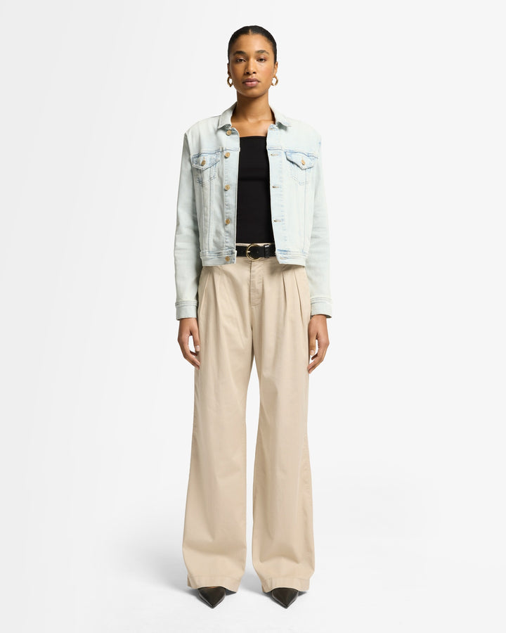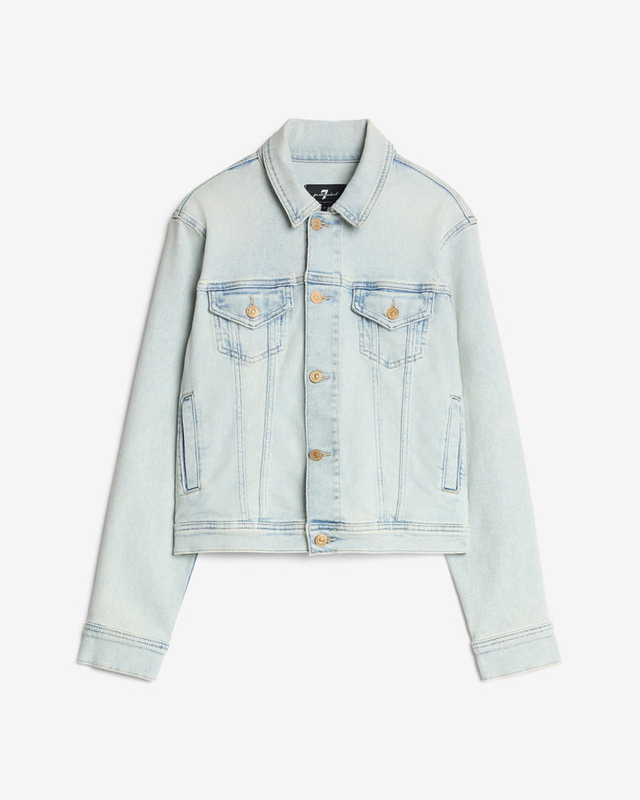 Experience classic cool with this timeless denim jacket featuring a slightly relaxed fit that falls just above the hips. Crafted from Luxe Vintage fabric, it delivers a soft hand feel with medium stretch for added comfort and flexibility.