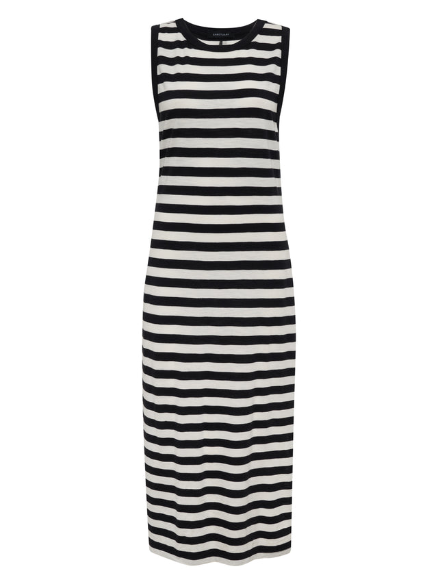 This Ribbed Tank Dress with Left Side Slit combines comfort and style with a relaxed fit and a flattering crew neck. Crafted from sustainably sourced 55% Organic Cotton and 45% Rayon, this dress is made to keep you cool and stylish while being kind to the planet.