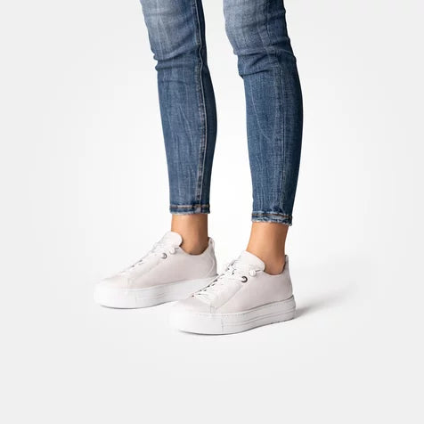 These SUPER SOFT Faye's by Paul Green are perfect for hip everyday styles. This model impresses with smooth white leather and gold details. Elastic laces create relaxed wearing comfort. This pair delivers an extra boost of comfort, thanks to their super soft finishing.