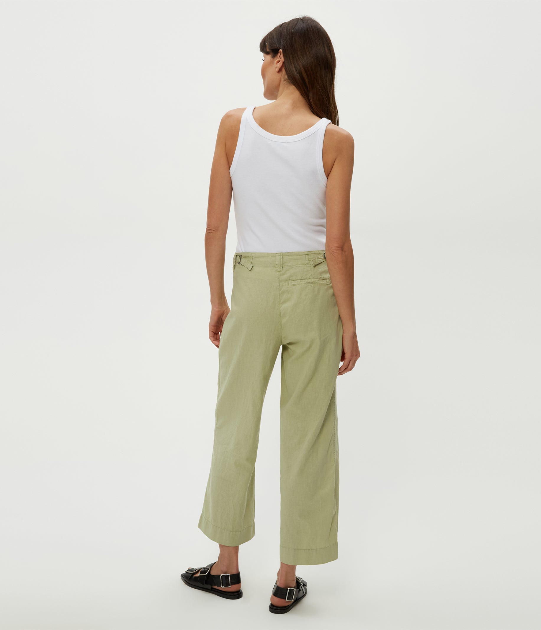 Designed to adapt to your style and comfort, this cropped straight-leg pant is crafted from breathable 100% linen. With a mid-rise and adjustable tabs at the waist, you can achieve the perfect fit for any occasion—whether it’s a casual outing or a dressed-up affair.