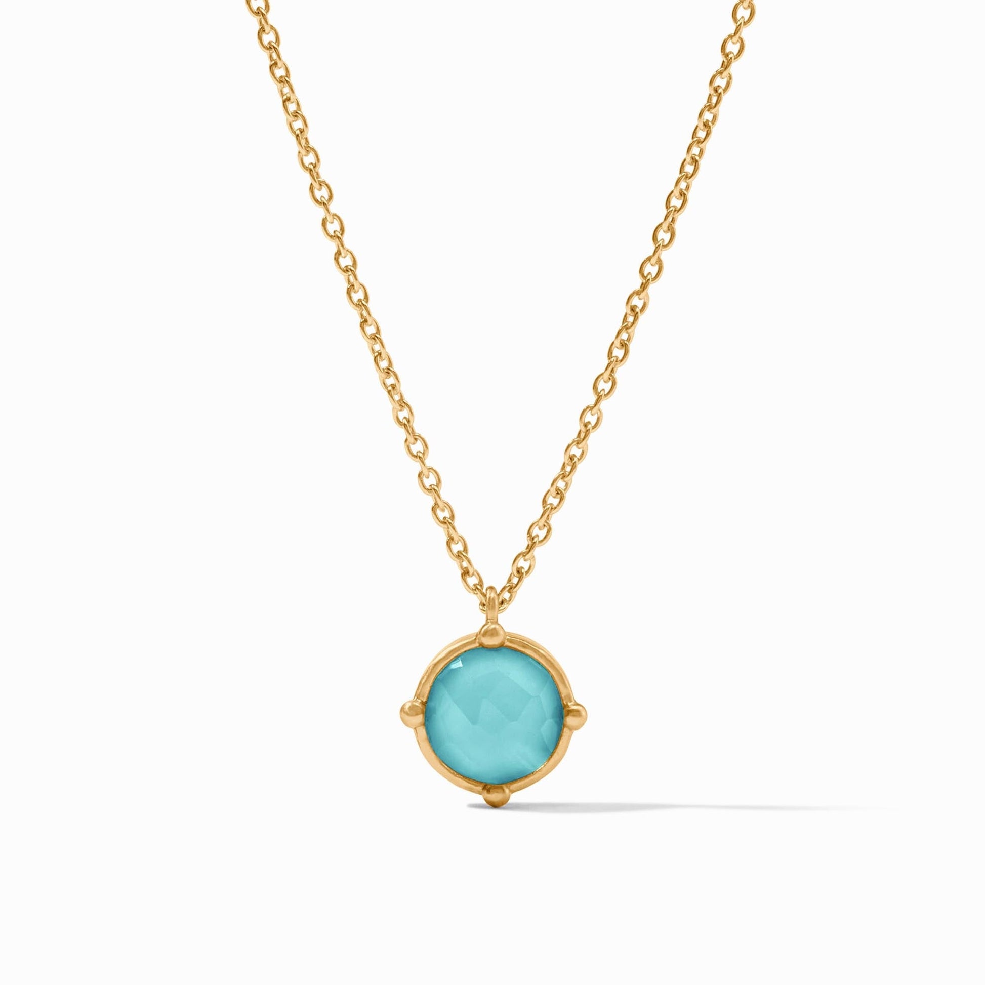 This refined necklace features a faceted gemstone enhanced with four golden beads, all dangling gracefully from a delicate cable chain. Perfect for adding a touch of elegance to any look.