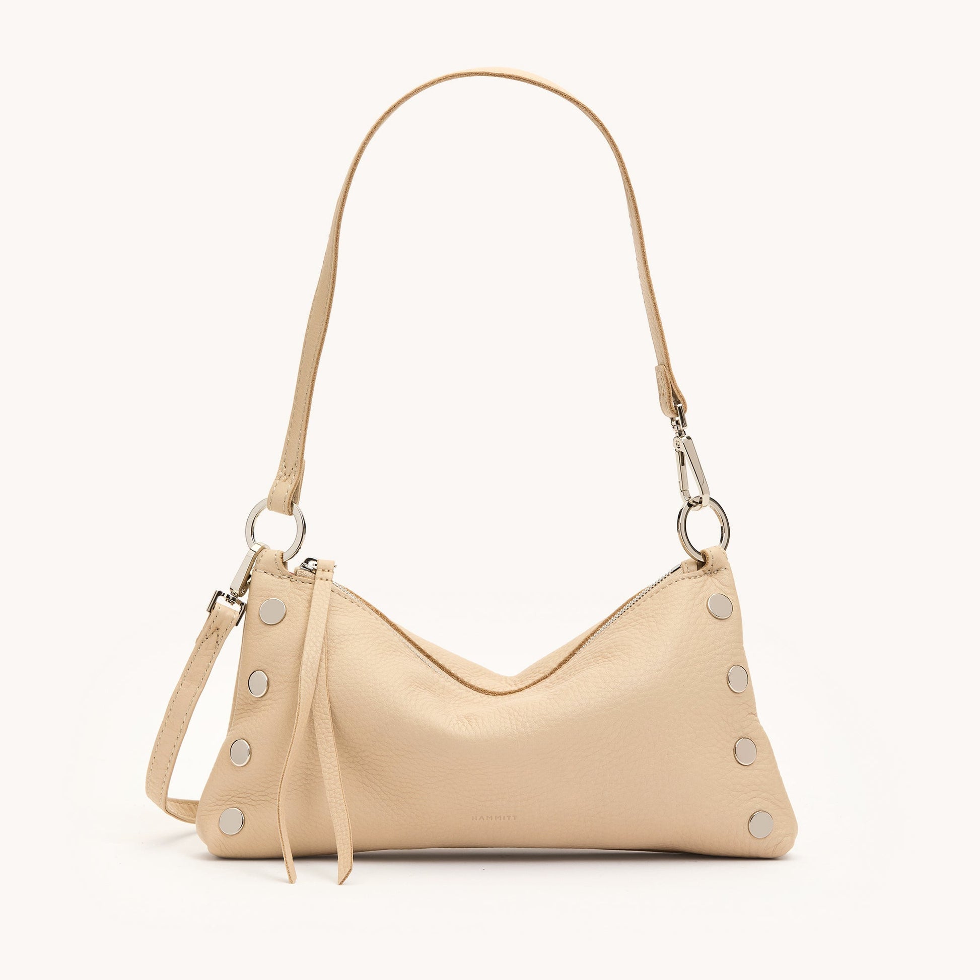 • Crafted with warm cream pebble leather featuring beige and taupe undertones