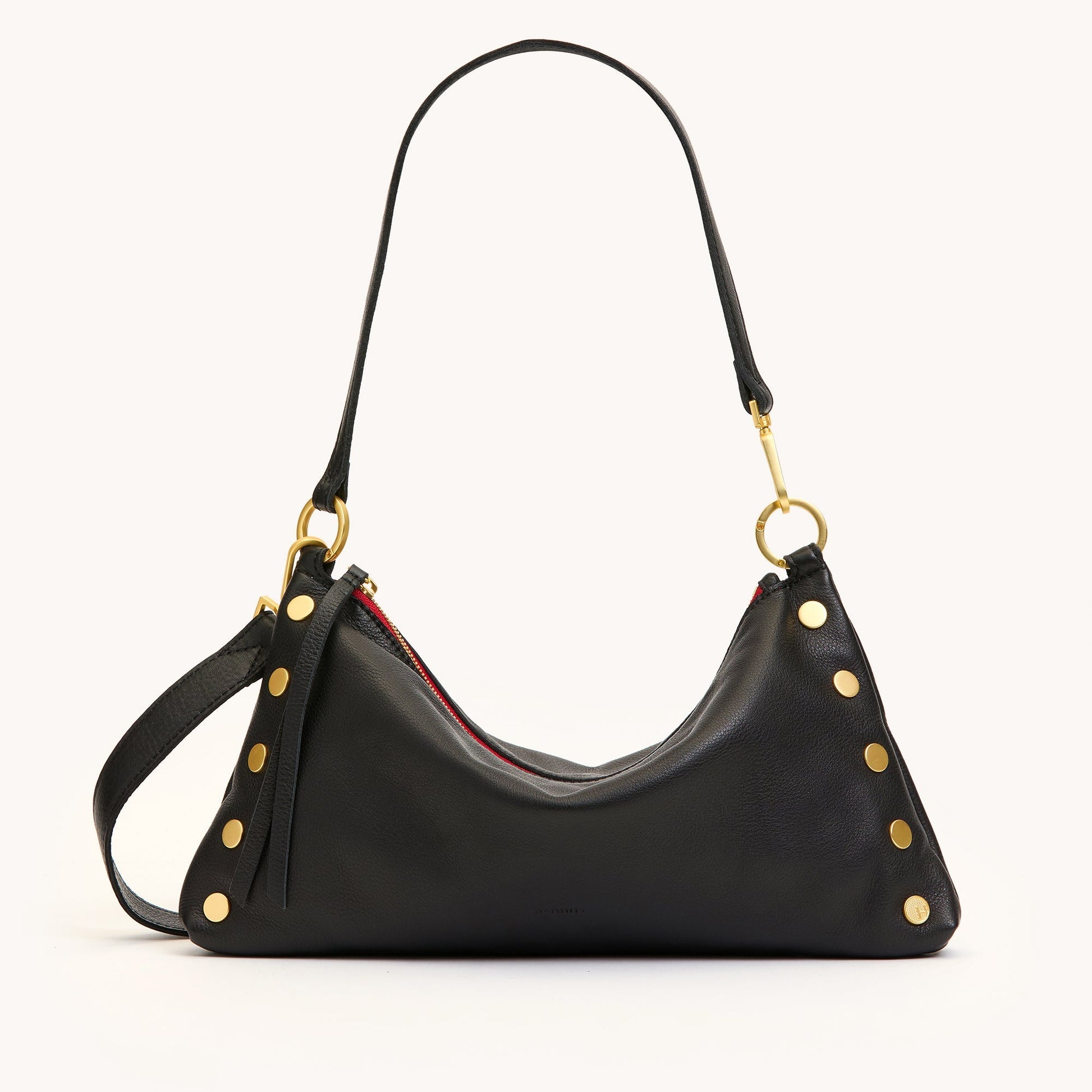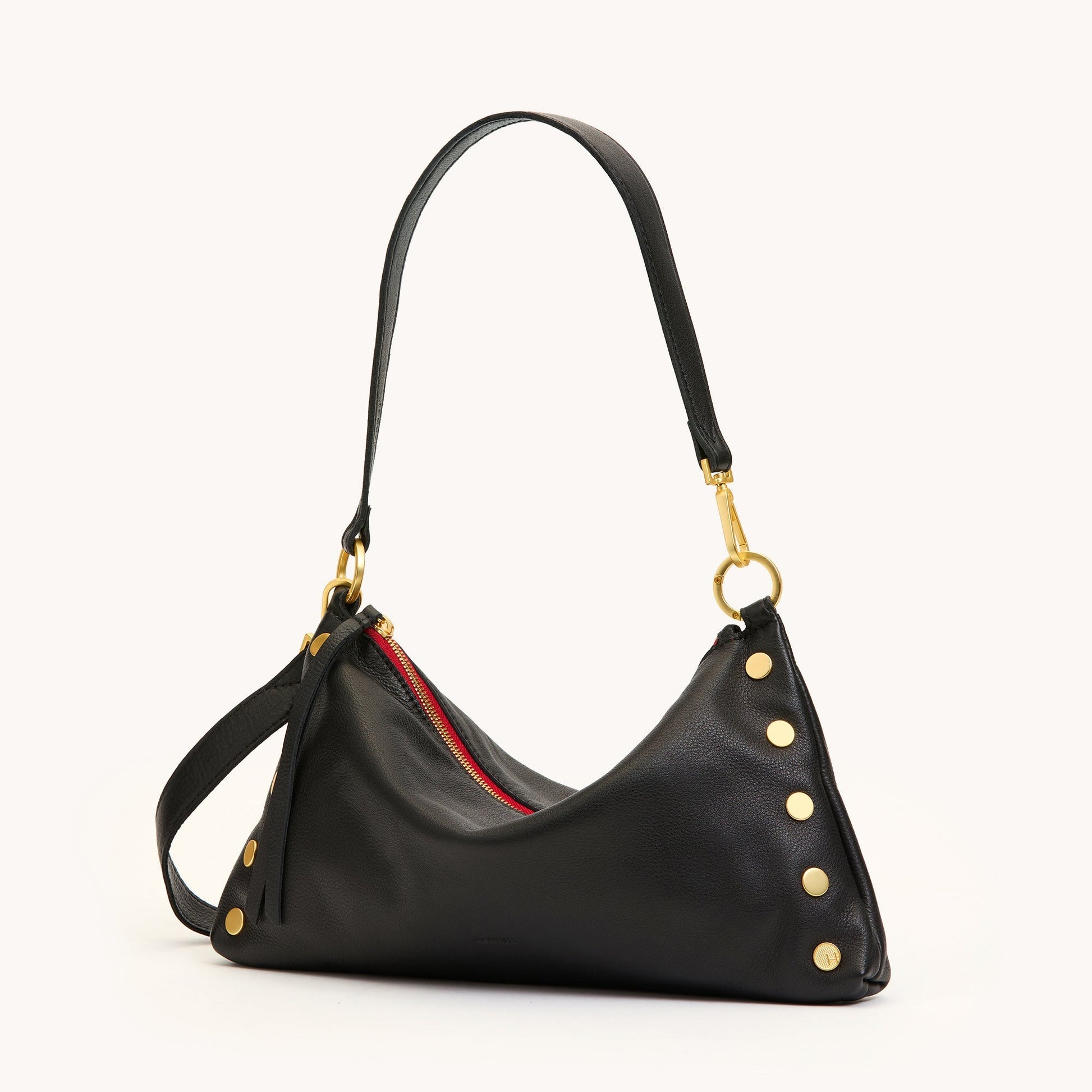Classic black pebbled leather paired with brushed gold hardware covered for life
