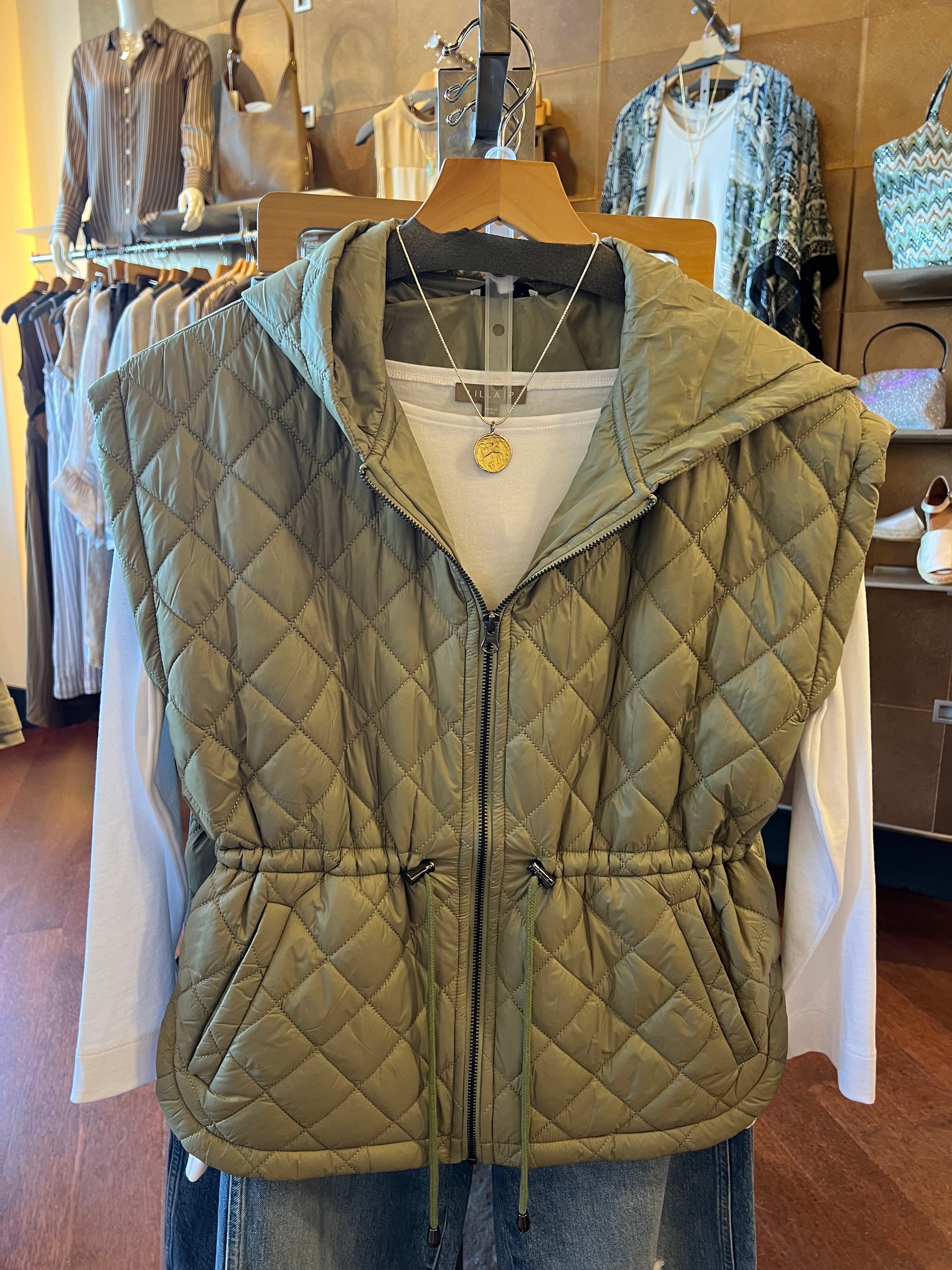 Layer up in cozy style with this quilted hooded vest. Designed with lightweight warmth and a drawstring waist for shape, it’s the perfect transitional piece to throw on over tees, knits, or even a dress. Casual yet refined, this vest brings both function and style.