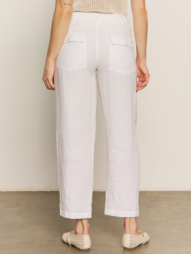 These Semi High Rise Pants feature a slight barrel leg and side seam stitch details for a unique, relaxed look. With a button fly closure and both front slant pockets and back pockets, these pants combine style and practicality. Made from a blend of 100% Linen and Cotton Rayon Slub, they offer comfort with a sustainable touch.