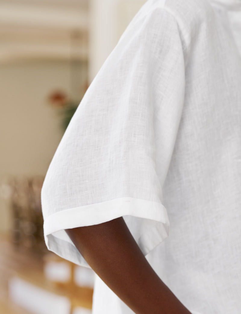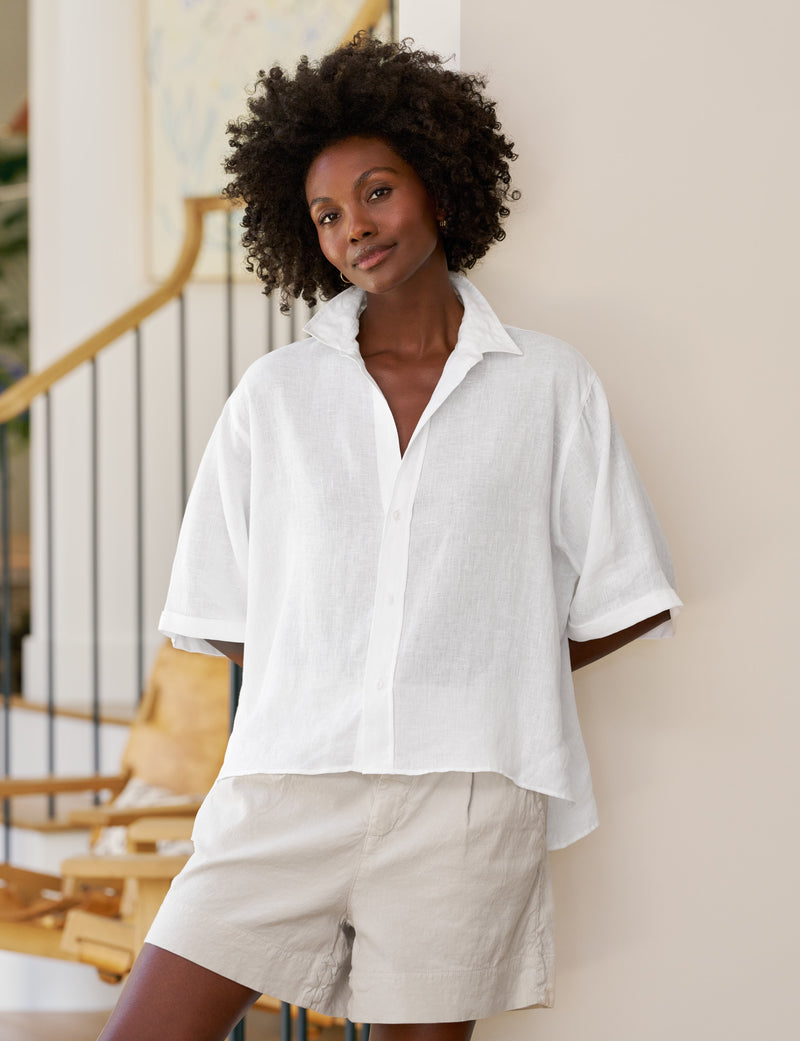 The elegant short sleeve button-up you’ve been waiting for—perfect tucked, untucked, or half-tucked with any pant in your closet. Designed for effortless styling, season after season