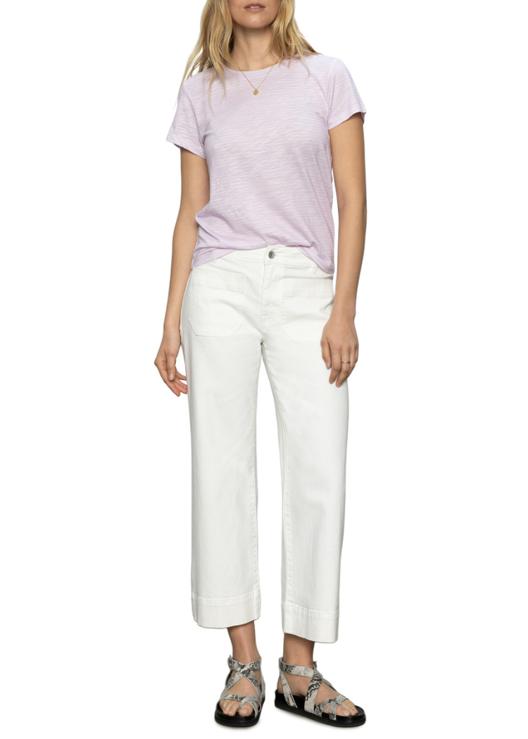 The Marine Cropped Denim Trouser in Bleached White is a modern wide-leg staple with a relaxed yet polished silhouette. Designed for comfort and versatility, this style blends casual ease with a structured look.