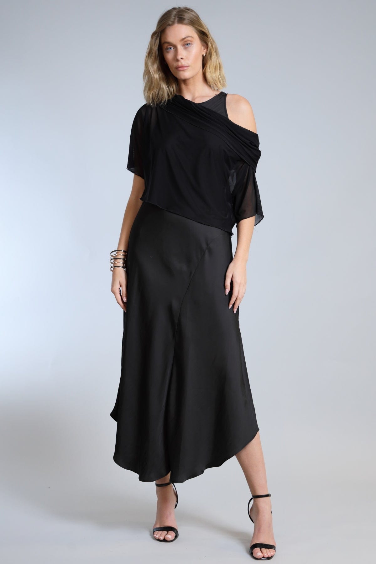 - Length: 53" from shoulder to the longest point, ensuring a dramatic, floor-sweeping effect.